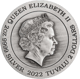- Rückseite: Die Queen und der Nennwert von 2$, der Jahrgang 2021 und die Unzen-Größe „2OZ“