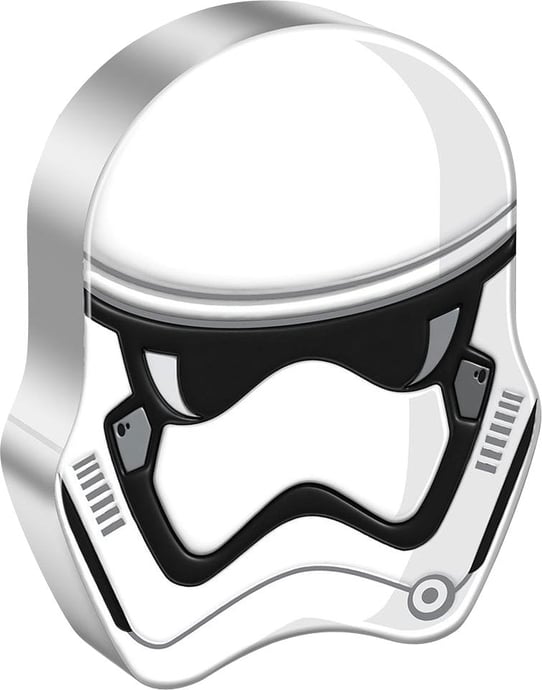 Auf der Motivseite dieser Silbermünze ist der Helm des Stormtroopers™ eingeprägt, beziehungsweise die Münze nimmt sogar die Form der Maske an. Der Stormtrooper™ ist ein fiktiver Soldat aus dem Star Wars™ Universum. Er hatte bereits 1977 seinen ersten Auftritt. Und zwar in dem Film Krieg der Sterne™.