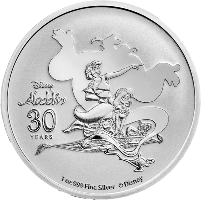 Wir freuen uns, Ihnen heute eine ganz besondere Münze präsentieren zu dürfen: Die 1 Unze Silber Disney™ Aladdin 2022. Diese exquisite Münze ist eine wahre Augenweide für Sammler und Investoren gleichermaßen. Geprägt in feinstem Silber und mit einem detailreichen Motiv versehen, ist sie ein absolutes Highlight in jeder Sammlung.
