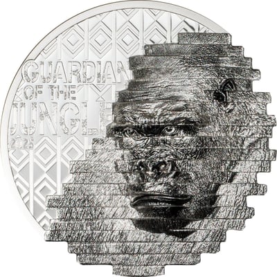 Was macht diese Silbermünze so außergewöhnlich? Es ist das revolutionäre geschichtete Design, das buchstäblich über den Münzrand hinausragt. Der mächtige Gorilla, Wächter des Dschungels, durchbricht mit seinem durchdringenden Blick die verschiedenen Silberschichten. Umrahmt von uralten afrikanischen Mustern entsteht ein dreidimensionales Kunstwerk, das seinesgleichen sucht.