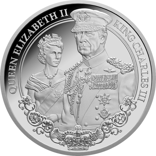 1 Unze Silber Portraits of Power Elizabeth II. & Charles III. 2025 (Auflage: 999 | Polierte Platte)