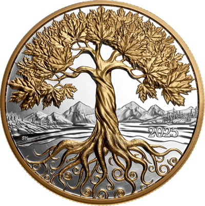5 Unze Silber Maple Tree of Life 2025 PP (Auflage: 1.750 | Ultra High Relief | Polierte Platte | teilvergoldet)