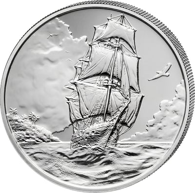 Ein majestätisches Segelschiff durchpflügt die Wellen des Atlantiks. Wolken ziehen am Himmel vorbei, während die prall gefüllten Segel im Wind tanzen. Diese beeindruckende Szenerie ziert die Vorderseite der brandneuen 1/10 Unze Silber Ascension Island 2025 – ein wahres Meisterwerk deutscher Prägekunst, das maritime Geschichte mit zeitloser Wertbeständigkeit vereint.