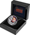 Diese außergewöhnliche Silbermünze besticht durch ihr spektakuläres Design. Ein Astronaut steht auf der zerklüfteten Oberfläche des Jupitermondes Callisto und blickt ehrfürchtig auf den gigantischen Gasriesen. Die charakteristischen Wolkenstrukturen Jupiters mit dem berühmten Roten Fleck werden durch brillante Farbapplikationen zum Leben erweckt. Eine Rakete im Flug komplettiert diese futuristische Szenerie.