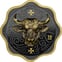 Der Kontrast zwischen dem dunklen Ruthenium und den goldenen Elementen verleiht der Münze eine geradezu mystische Ausstrahlung. Der Ochsenkopf scheint förmlich aus dem Dunkel hervorzutreten – ein Effekt, der Sammlerherzen höherschlagen lässt.