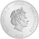 Auf der Rückseite der Münze befindet sich ein Porträt von Queen Elizabeth II., der Nennwert von 2 Dollar, das Ausgabeland Niue sowie das Ausgabejahr 2022.
