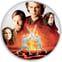 Im Hintergrund wird in Farbe das feuerrote Lava eines Vulkanes angedeutet, was die Kampfszene noch einmal beeindruckender wirken lässt. Mustafar™ ist ein vulkanischer Planet. Über den Beiden sind, ebenfalls eingefärbt, die Köpfe von vier Hauptcharakteren aus dem Star Wars™ Universum zu sehen: Padme Amidala™, Anakin Skywalker™, Obi-Wan Kenobi™, und Sheev Palpatine™.