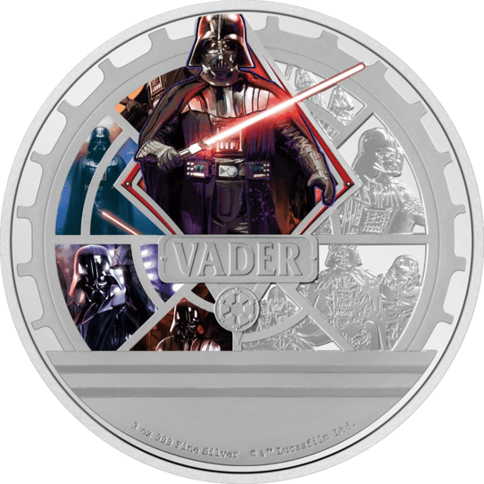 - Motiv: Die Münze zeigt das eindrucksvolle Motiv von Darth Vader, dem berühmten Sith Lord aus Star Wars