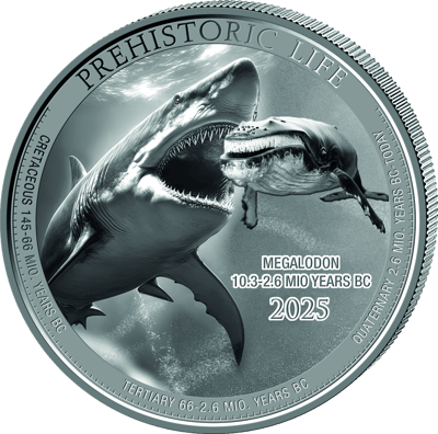 1 Unze Silber Prehistoric Life Megalodon 2025 (Auflage: 10.000)