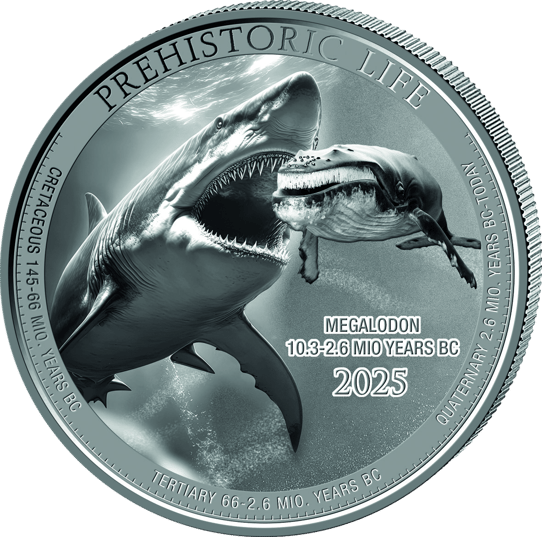 Bedenken Sie: Bei einer Limitierung von weltweit nur 10.000 Stück und der wachsenden Sammlergemeinde für die Prehistoric Life Serie ist diese Münze prädestiniert für eine positive Wertentwicklung. Schon heute sind frühere Ausgaben dieser Serie bei Sammlern heiß begehrt. Das Wertsteigerungspotential dieser sehr niedrigen Auflage macht den Megalodon 2025 zu einer klugen Ergänzung für jede Sammlung.