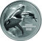 Die Vorderseite zeigt den Megalodon in seiner ganzen Pracht – mit weit aufgerissenem Maul, das seine messerscharfen Zahnreihen offenbart. Die detailreiche Darstellung lässt Sie förmlich spüren, wie dieser Urzeit-Gigant einen Wal verschlingt. Jede Schuppe, jeder Zahn wurde mit höchster Präzision geprägt. Die Inschriften "PREHISTORIC LIFE", "MEGALODON" und "10.3-2.6 MIO YEARS BC" rahmen diese dramatische Szene perfekt ein.