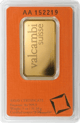 Auf der Rückseite finden Sie das Logo des Herstellers – Valcambi. Bitte achten Sie darauf, dass die individuelle Nummer des Barrens auch auf der Rückseite des Zertifikats angegeben sein sollte.