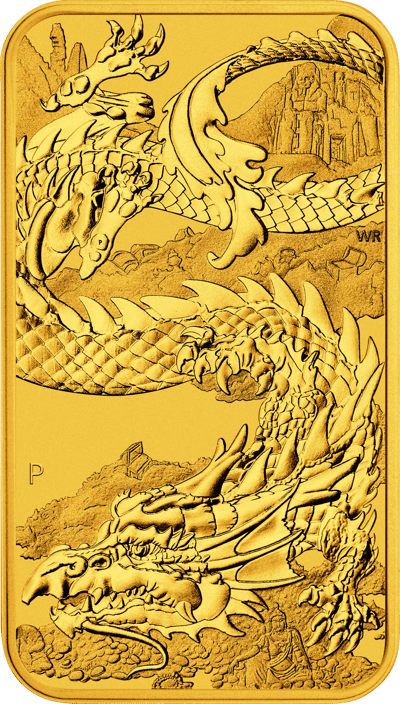 Tauchen Sie ein in die majestätische Welt der Drachen mit dieser atemberaubenden, rechteckigen Goldmünze, die die Einzigartigkeit eines Barrens und den kulturellen Reichtum einer Münze in sich vereint. Geprägt von der angesehenen Perth Mint, vereint diese Goldmünze die Form und Anziehungskraft eines Goldbarrens mit dem kulturellen Reichtum und dem Investitionspotential einer Münze.