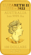 In der chinesischen Kultur werden Drachen als mächtige und glückbringende Wesen verehrt, Symbole der Stärke, Weisheit und Wohlstand. Sie sind sowohl faszinierende Gottheiten als auch die personifizierte Macht des Kaisers. Die Rückseite präsentiert das ikonische Porträt von Königin Elizabeth II. sowie alle wichtigen Details der Münze, einschließlich Herkunftsland (Australien), Gewicht (1 Unze), Reinheit (999,9 Gold), Prägejahr (2023) und Nennwert (100 australische Dollar).