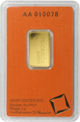 Des Weiteren lassen sich besonders leichte Barren, wie dieser 5 Gramm schwere Goldbarren, leicht veräußern und sind aufgrund ihrer geringen Größe eine schöne Geschenkidee.