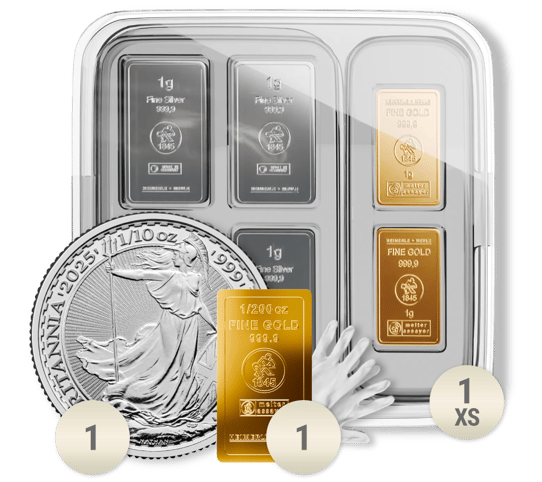 In unsicheren Zeiten ist eine durchdachte Absicherung mit Edelmetallen wichtiger denn je. Das Webinar Paket XS vereint die beliebtesten Krisenschutz-Produkte in einem optimal aufeinander abgestimmten Set. Mit der Kombination aus Gold und Silber in kleinen Stückelungen schaffen Sie die perfekte Grundlage für Ihre persönliche Krisenvorsorge.