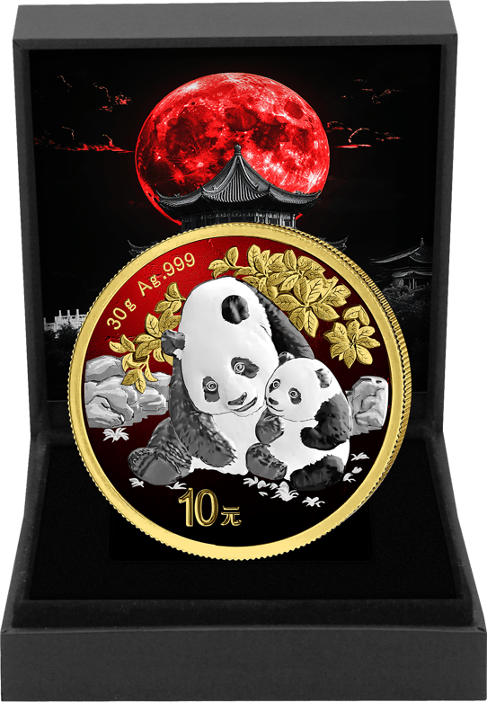 30g Silber China Panda Red Moon 2024 (Auflage: 100 | teilvergoldet)