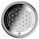 Die Rückseite präsentiert die heilige Geometrie der Blume des Lebens, umrahmt von einem eleganten keltischen Muster. Diese Polierte Platte besticht durch ihre spiegelglatte Oberfläche und die gestochen scharfen Details.