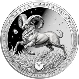 Diese außergewöhnliche Silbermünze vereint astrologische Symbolik mit höchster Prägekunst. Der majestätische Widder – erstes Zeichen des Tierkreises und Symbol für Mut, Energie und Neuanfang – wurde mit atemberaubender Detailtreue in reinstes Silber geprägt. Ein echter Diamant, eingebettet in den funkelnden Sternenhimmel, macht diese Münze zu einem wahren Schatz für anspruchsvolle Sammler.
