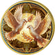 Nicht minder beeindruckend präsentiert sich die Rückseite dieser Rarität. Zwei majestätische Tauben mit weit ausgebreiteten Flügeln tragen gemeinsam einen Olivenzweig – ein zeitloses Symbol für Frieden und Hoffnung. Der strahlende goldene Hintergrund mit geometrischen Mosaikmustern verleiht dem Motiv eine sakrale Tiefe. Ornamentale Verzierungen am Rand vollenden das harmonische Gesamtbild.
