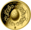 Nicht minder beeindruckend präsentiert sich die Wertseite der Münze. Im Zentrum thront ein großes Ei mit aufbrechender Schale – der Moment der Wiedergeburt, eingefangen in purem Gold. Umgeben wird dieses kraftvolle Symbol von einem opulenten Kranz barocker Ornamente. Geschwungene Linien und florale Elemente verschmelzen zu einem symmetrischen Kunstwerk, das an die Meisterwerke vergangener Epochen erinnert.