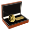 Ihrer Bedeutung entsprechend wird die 1/4 Unze Gold Phoenix 2026 in einem hochwertigen Holzetui mit eleganter Wurzelholzoptik geliefert. Das samtschwarze Interieur bildet den perfekten Rahmen für dieses goldene Kunstwerk. Eine nummerierte Messingplakette dokumentiert die Echtheit und Einzigartigkeit Ihres Exemplars.