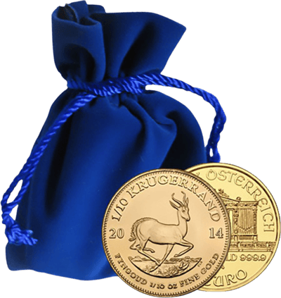 Mit diesem Paket erhalten Sie 100 Goldmünzen, die in zwei wunderschönen Samtbeutel geliefert werden. In einem dieser Samtbeutel finden Sie 50 Krügerrand Goldmünzen und in dem anderen 50 Wiener Philharmoniker Goldmünzen. Beides sind angesehene und begehrte Anlagemünzen, die Ihnen dabei helfen werden, Ihr Vermögen zu schützen und bei einer Inflation nicht zu verlieren.