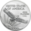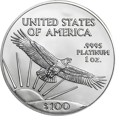 Das Motiv dieser Platinmünze ist der bekannte Weißkopfseeadler. Dieser befindet sich mitten im Flug und hat seine großen Flügel weit gespannt. Im Hintergrund ist die strahlende Sonne zu sehen. Über dem Vogel steht groß United States of America geschrieben.