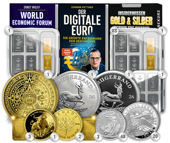 In einer Zeit, in der der digitale Euro vor der Einführung steht und finanzielle Unsicherheiten zunehmen, bietet Ihnen das Webinar Paket M eine durchdachte Kombination aus bewährten Edelmetallen, exklusiven Sammlerstücken und explosivem Expertenwissen. Dieses sorgfältig zusammengestellte Paket vereint Gold und Silber in praktischen Stückelungen – perfekt als diskretes Tauschmittel und mobile Sicherheit für Krisenzeiten.