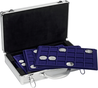 Münzkoffer mit 6 herausnehmbaren Münztableaus: