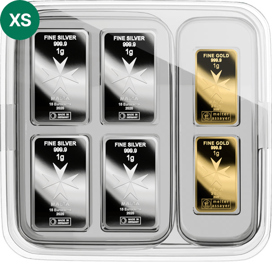 - 4 × 1 g Silbermünzbarren (Fine Silver 999.9) mit Nennwert 15 Eurocents – Malta 2026