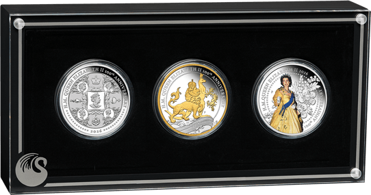 - Exklusive Sammlermünze: Dreiteiliges Silber-Set zu Ehren der legendären Queen Elizabeth II.