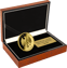Die Münze wird in einem hochwertigen Holzetui mit samtschwarzer Innenauskleidung geliefert. Neben der Münze befindet sich eine goldene Plakette mit dem eingangs zitierten Leitspruch sowie der individuellen Nummerierung des jeweiligen Exemplars. Diese Präsentation unterstreicht den exklusiven Charakter und macht die Deutsche Mark 2026 auch als Geschenk zu einem unvergesslichen Erlebnis.