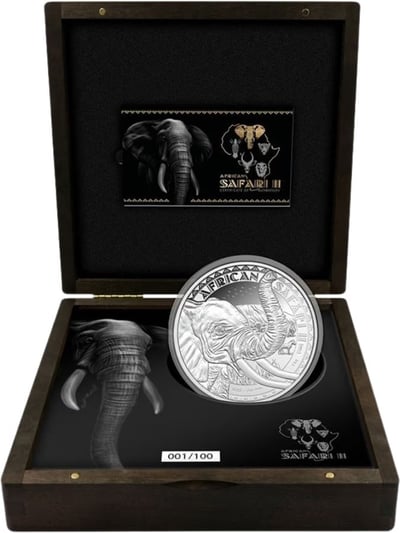 1kg Silber African Safari II Elefant 2022 (Auflage: 100 | Polierte Platte | Zertifikat Nr. 100)