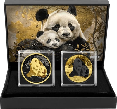 Das China Panda Set 2024 besteht aus zwei beeindruckenden Silbermünzen, die jeweils ein liebevolles Motiv einer Pandamutter mit ihrem Jungen zeigen. Die Münzen sind unterschiedlich veredelt, was ihre Einzigartigkeit unterstreicht: