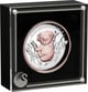 Das Motiv der Münze zeigt einen Koala, der auf einem Ast eines Eukalyptusbaums sitzt. Dieses typisch australische Motiv ist mit 22-karätigem Roségold veredelt, was einen beeindruckenden Kontrast zum silbernen Hintergrund bildet. Auf der Rückseite der Münze ist das Porträt von Königin Elizabeth II. abgebildet, ergänzt durch die Aufschriften "8 DOLLARS", "ELIZABETH II" und "AUSTRALIA".