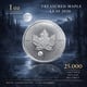 Die 1 Unze Silber Treasured Maple Leaf 2026 Wolf ist mehr als eine Münze – sie ist ein Statement für Kenner, die Wert auf Exklusivität und Qualität legen. Mit nur 25.000 Stück weltweit gehört sie zu den Münzen, die man nicht verpassen sollte.