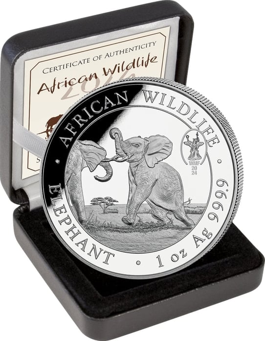 Exklusiver Glanz aus Somalia: Die 1 Unze Silber Somalia Elefant 2024 PM WMF