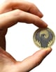 Die komplett teilvergoldete Münze zeigt das Wappentier des Kongress, einen Phönix mit der Flagge der USA als Korpus. Das Wappen wurde mit Ruthenium veredelt und dadurch hebt sich das Wappen ideal vom vergoldeten Hintergrund ab.