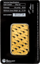 Der Goldbarren wird in einem schützenden Blister versendet, in dem ein Zertifikat enthalten ist, das die Originalität des Produktes sowie die Richtigkeit aller erwähnten Angaben garantiert.