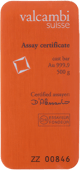 Diesen 500 g Valcambi Goldbarren erhalten Sie gut verschweißt in einer durchsichtigen Folie und mit einem Feinheitsgrad von 999,9/1000. Neben diesem sind auf der Oberseite des Goldbarrens auch das Gewicht von 500 g sowie das Herstellerlogo inklusive Schriftzug „Valcambi Swiss“ eingeprägt. Typisch für Goldbarren aus dem Hause Valcambi ist die gewohnt hochwertige Prägequalität, die unsere Anleger schon seit vielen Jahren lieben.
