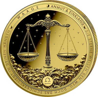 „Die Sterne weisen den Weg, doch das Schicksal liegt in deinen Händen" – so lautet die Inschrift auf dieser besonderen Prägung, die jeden Waage-Geborenen und Liebhaber feiner Goldprägungen gleichermaßen begeistern wird.